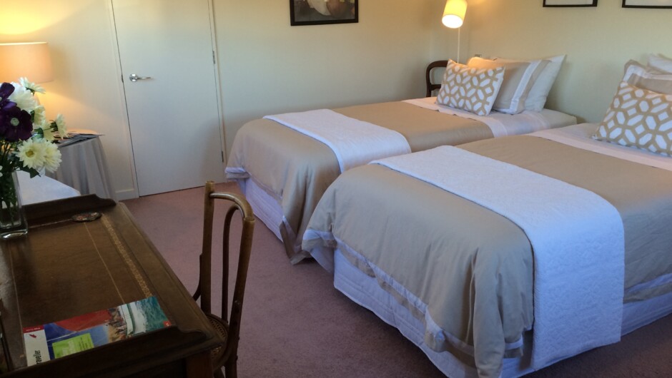 Close to the airport and the centre yet people always remark on how quiet it is at Thornycroft Bed and Breakfast. This is not only because of its serene setting but also because it is tucked away at the end of a cul-de-sac in a leafy suburb with no noisy traffic; People also say that it feels like a "home away from home". They love chatting over breakfast in the relaxed atmosphere. The guests' reading/living room with television is a delight to retire to after a hectic day, as is the courtyard - on a warm, sunny day. The park across the road has a public tennis court, a library and a field for exercise. There are some fabulous walks such as to historic Riccarton House with its famous Bush Walk and to historic Mona Vale with scenic garden.