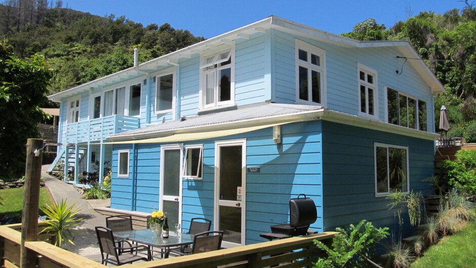 Small homely hosted self-catering accommodation. Great waterfront location with sandy beach & jetty at start/end of Queen Charlotte Track in the stunning Marlborough Sounds - perfect for walking, kayaking, mountain biking or just relaxing.