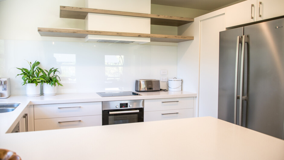 The open plan living area of the house boasts a sunny lounge and dining table which allows you to sit and relax while taking in the views of the Remarkable Mountains. The house has a lovely fully equipped modern kitchen. The corner hanging chair just yells of grabbing a good book and a drink (wine or coffee depending on the time of day) and making yourself comfortable – you may never want to leave. The fully equipped kitchen is a great place to prepare some fantastic local foods for your family or group. Can’t you just imagine the smells you could come home to after a days skiing or exploring if you put the slow cooker on before you headed out for the day. The TV room features a flat screen Smart TV which is Netflix capable.