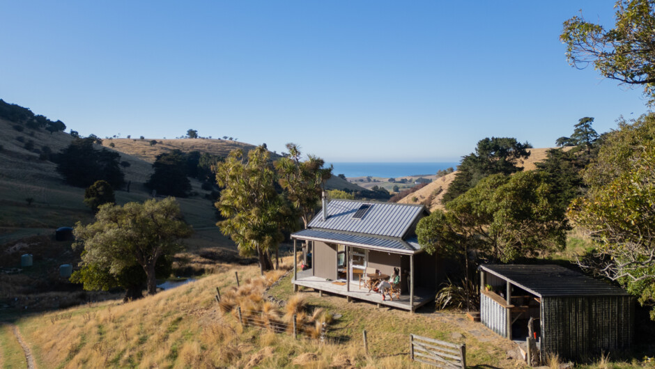 Goodwood Heights is 45 minutes North of Dunedin in the South Island. The cosy hut contains a comfy bed, breakfast bar, and plush chairs nestled beside a crackling wood burner. Step outside onto the wrap-around deck, where a steaming hot tub awaits with stunning ocean views. A well-sheltered outdoor kitchen is just metres away, with a refreshing outdoor shower tucked between the buildings. Simple living never looked so good. Stroll the lush bush walks weaved throughout the property, or venture to nearby Tavora Reserve for a chance to see the incredible yellow-eyed penguins.
