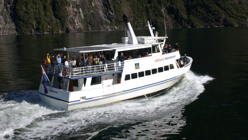Being Milford Sounds premium Cruise Operator we guaranteed uncrowded cruises and for passenger comfort and satisfaction we endeavor to keep our loadings to half our capacity so customers can move around freely during the cruise, A newly refurbished upper cabin featuring Luxury Lounge Suites positioned to face outwards, provides a new level of comfort to Milford Sound. The Milford Adventure is a spacious vessel with upper and lower decks providing freedom of movement, unparalleled viewing from stern to bow and the glass covered external deck, provides great all weather viewing. Complimentary coffee, tea and biscuits on all sailings, Informative commentary and exceptional customer service has lead to being voted the #1 Milford operator.