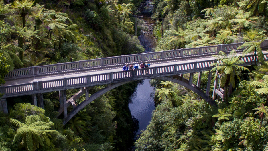 All FWA experiences feature an iconic self-driven rail cart journey on the 142km long historic Stratford-Okahukura Line. The Expedition is a spectacular two-day guided adventure featuring helicopter and jet boat rides. Ride the rails through 20 hand-built tunnels to the Republic of Whangamōmona, helicopter over the Whanganui National Park, enjoy a guided bush walk to the Bridge to Nowhere and journey back up the culturally significant Whanganui River on the longest commercial jet boat ride in the Southern Hemisphere. Includes: Dinner, bed and breakfast at the historic Whangamōmona Hotel, rail-side food and drinks, helicopter flight, jet boat ride and transfers. Optional Extras: Forgotten World Motel. Departs: 7.30am from Taumarunui.