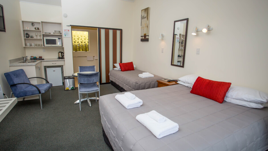 Located in the coastal town of Timaru, The Coast Motel offers 6 Studios that sleep from (1-3) and 4 Kitchenette Family Studios that sleep from (1-5). At the rear of our complex we have our very quiet modern Superior Apartment that sleeps from (1-7) it features a huge open plan/living area with single bed for that extra guest, a full kitchen with dishwasher, 3 spacious bedrooms, large bathroom and self-contained laundry.