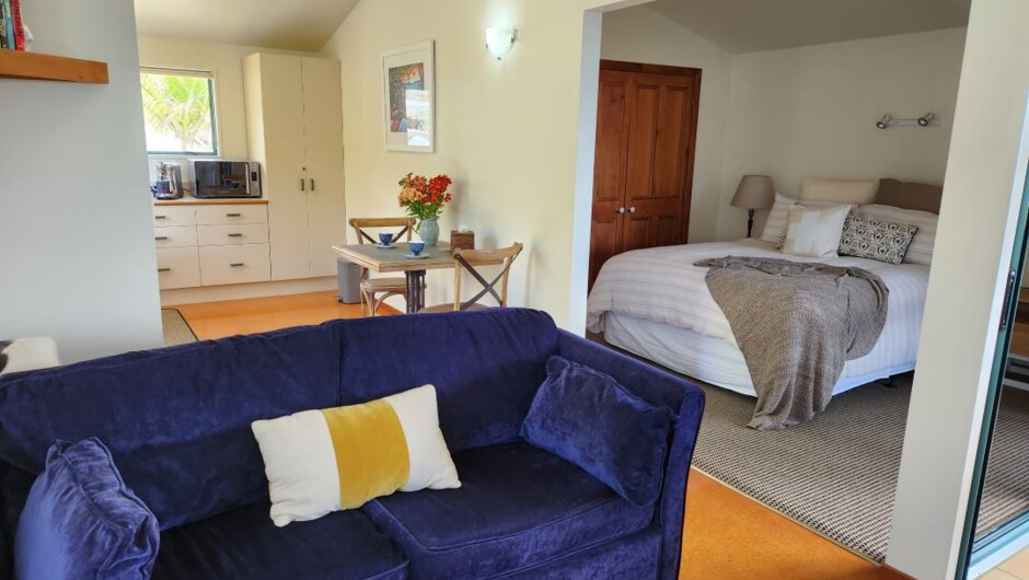 Overlooking a stunning beach the Lodge and Studio enjoy impressive sunsets, incredible night skies and expansive sea views. We offer 3 beautiful rooms with ensuites/private bathrooms with Ashley & Co toiletries and a one bedroom cosy, private studio. Each room/studio has been thoughtfully equipped with WIFI, a coffee machine, fridge with complimentary welcome drinks, comfy chairs and romantic candles. Private decks allow you to sit outside your room and enjoy the beautiful gardens and birdlife. Take the time to enjoy a day out excursion with local walks, Cathedral Cove, Hahei and Hot Water Beach, Otama, New Chums, Driving Creek Railway all within easy travel. Or chose to stay close to home and relax and swim at the beach below.