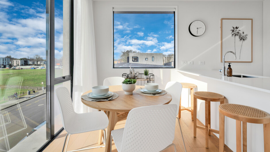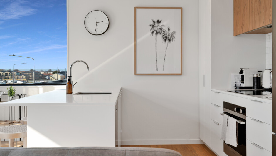 Relax on the balcony with a glass of wine while you enjoy golden hour views. This brand new city centre apartment was tastefully designed to embrace natural light and capture stunning views.
