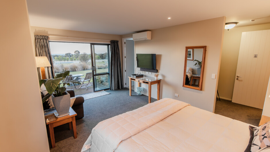 Luxury guest lodge located in a tranquil rural setting, surrounded by groves of native trees and bush, with spectacular views of the Kaikoura range mountains and beyond to the Pacific Ocean.