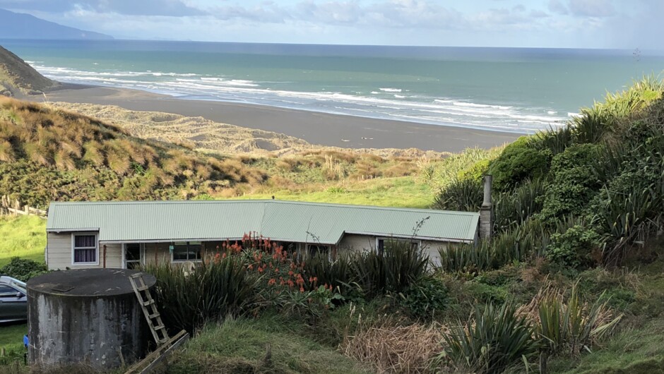 The Beach Cottage is a recently rejuvenated 50-year-old bach (holiday home) overlooking the beautiful remote Waikorea Beach. Waikorea Beach is located between Raglan and Port Waikato on the West Coast of New Zealand's North Island. The Cottage is a 2 bedroom New Zealand style bach overlooking the beach, with every room offering an amazing view. The Cottage is set on a 1500 acre sheep and cattle farm. To keep you warm in the evenings the cosy lounge has an open fire and there are an outdoor brazier and firewood to burn.