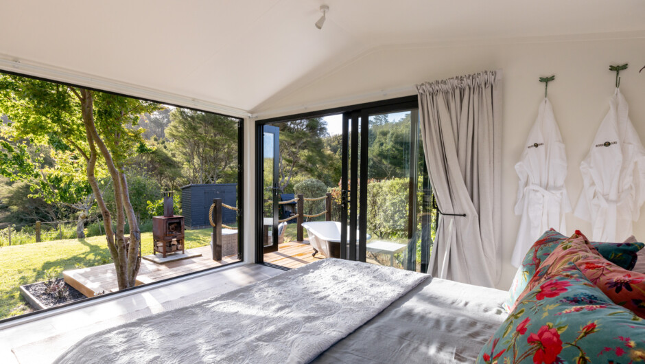 River Haven is set in a private clearing with parking. Just a minutes' walk from the river and surrounded by farmland and native bush, this is the perfect place to escape the rat race and switch off. Perfect for solo travelers or a romantic getaway where you can relax with a glass of wine by the outdoor fire or in the outside bath. Fabulous packages available for romance packages and families.