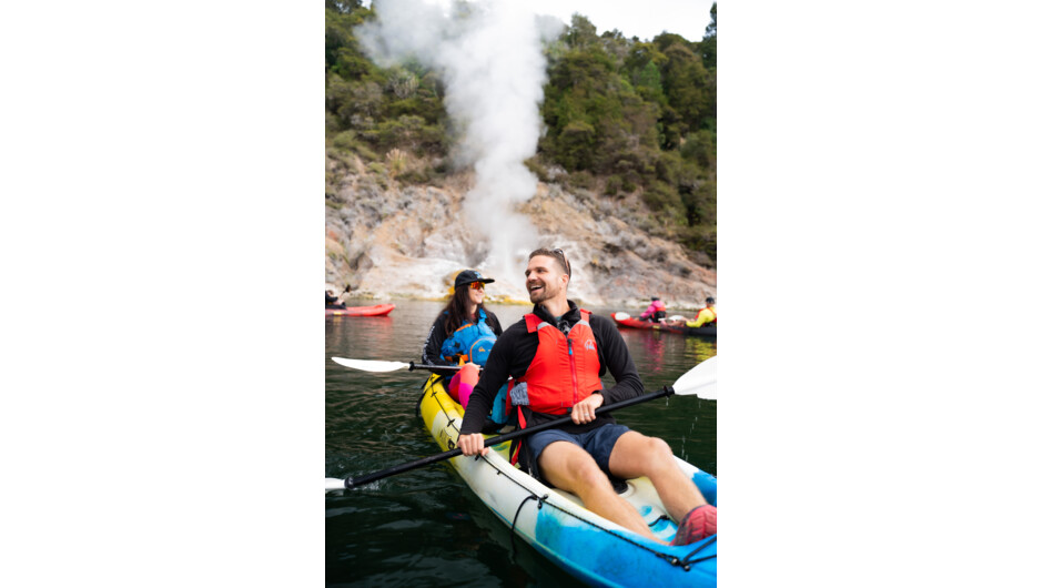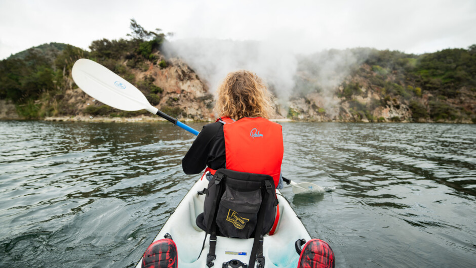 Pick-up and return transfer from Rotorua Information Centre included in bookings, please arrive 10mins before departure time: 1167 Fenton Street Rotorua. Spectacular geothermal wonders Perfect for all ages (5 years and over) No experience needed Small group tours with exclusive lake access (1 guide per 8 kayakers) Professional, knowledgeable, and fun guides Trip Advisor Certificate of Excellence Award Allow at least 5 hours for the round trip leaving from and returning to Rotorua.