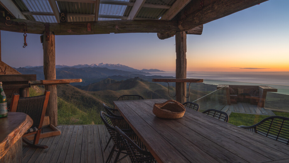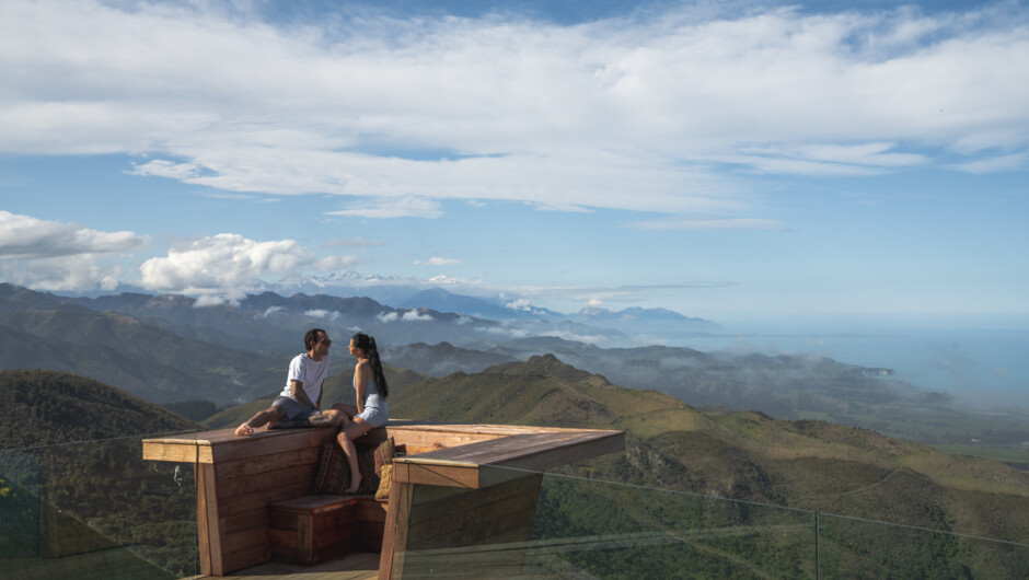 Nestled amongst the coastline of the Pacific Ocean and native forest valleys, bordered by the Conway River, on New Zealand's most iconic Angus stud farm, sits Matai Peak – Luxury Kaikoura coastal experience. Take a 15 minute heli flight from Kaikoura and land at a private and secluded luxury hut on New Zealand’s largest Angus stud farm. Enjoy a light lunch of locally sourced and produced delicacies before trying your hand at claybird shooting with a view. Climb aboard a 4x4 buggy with the farmer for a full tour of the extraordinary pastures and incredible vistas and to end your tour, drop into Te Mania’s ‘Saloon Bar’ for a well-deserved refreshment and enjoy the rustic setting full of memorabilia and history.