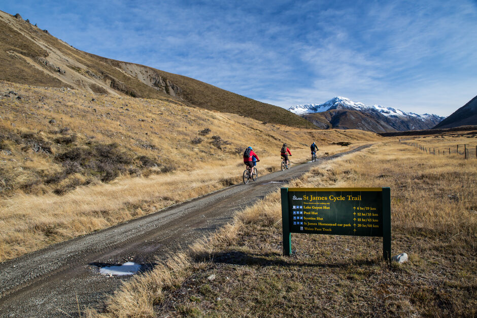 The St James Cycle Trail is a remote high-country Great Ride which rewards cyclists with views of golden meadows, beech forest, lakes and rivers – backdropped by soaring, snow-capped peaks.