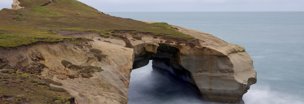 For centuries the Southern Ocean and its salt-laden wind have sculpted the sandstone coastline south of Dunedin. The outcome is a line of magnificent high cliffs, arches and headlands that provide endless vantage points for breathtaking views.