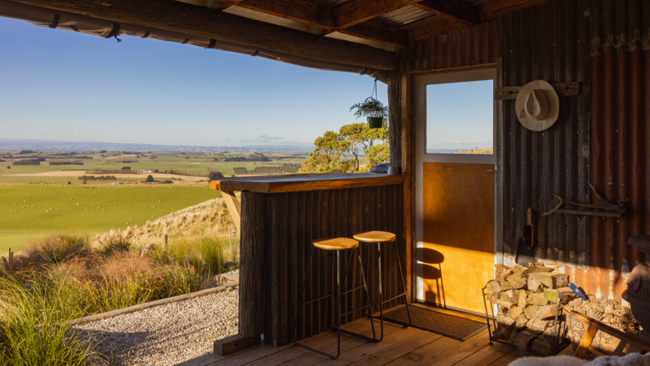 Harri's Hut is located in the Otago region, approximately one hour north of Invercargill and 90 minutes from Dunedin. It's an ideal spot for travellers journeying between Te Anau or Central Otago and the stunning Catlins coastline – especially for those who wish to break up their journey without covering the entire distance in one go. Nestle into the sheltered deck where a potbelly stove warms the space with a couch, kitchen and bar leaner. Inside, a quaint bedroom awaits – its large window perfectly framing the views. The bathroom is attached to the rear of the hut. Relax in the swinging chair under the trees or soak in the wood-fired outdoor bath, surrounded by birdsong.