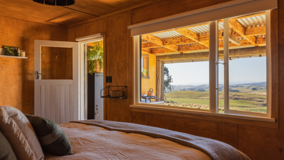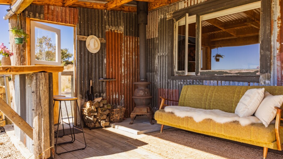 This old shepherd’s hut has been beautifully refurbished into a rustic off-grid retreat nestled against four hectares of remnant forest. As you approach the hut, views of rolling pastures unfold all the way to Central Otago.