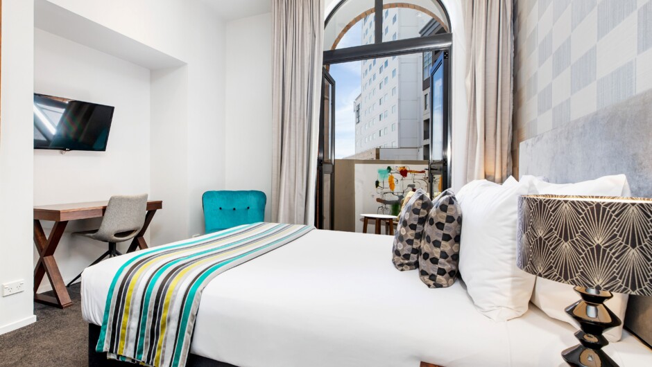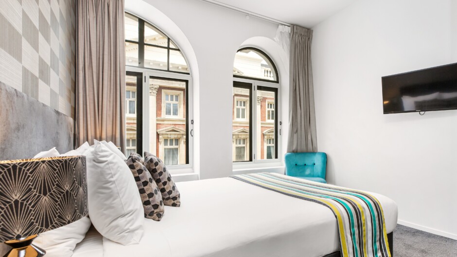 Positioned in the heart of the city only 3 minutes’ walk to Te Pae Convention Centre, 1 minute from Cathedral Square and the iconic New Regent Street. It is in a shopping district with many cafés and restaurants. There are a variety of rooms to choose from, all different shapes and sizes. Rooms are equipped with a free WIFI, hairdryer, and a flat-screen TV with satellite channels as well as private ensuite bathrooms. Some rooms provide bathtub, some rooms has adjoining balcony, while the Deluxe King rooms has air-conditioning. The property is non-smoking, and we have limited on-site carparking available. The complimentary access to the gym, swimming pool and spa facilities at a partner property (across the road) has aged 18+ restriction.