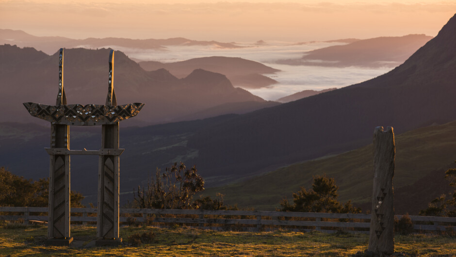 At 1,752 m (5,748 ft) tall, Maunga Hikurangi is the highest non-volcanic peak on the North Island and the first place in the world to see the sunrise. Rising above the rural community of Ruatoria, Maunga Hikurangi is a site of cultural significance for the Ngati Porou people. It is believed to the first part of Aotearoa New Zealand that emerged from the sea when Maui fished up the North Island. Locally guided our visitors are transported by 4WD UTV to “Te Takapau-a-Maui”. A sacred site with nine Maori carvings that depict the stories of Maui, the Polynesian adventurer, famous for his legendary deeds. Visitors will learn about Maui and his stories, witness a beautiful sunrise and epic mountainous views, and gain insight into the local region