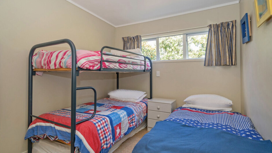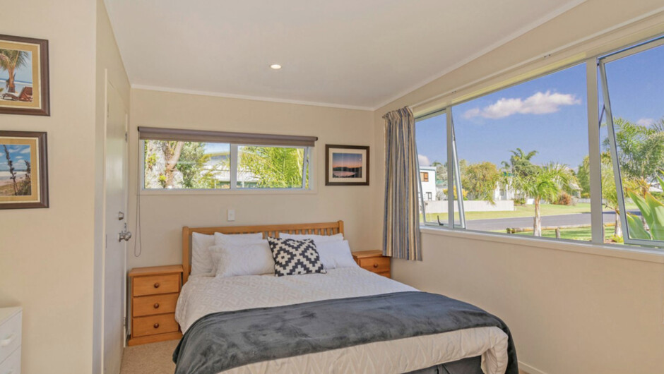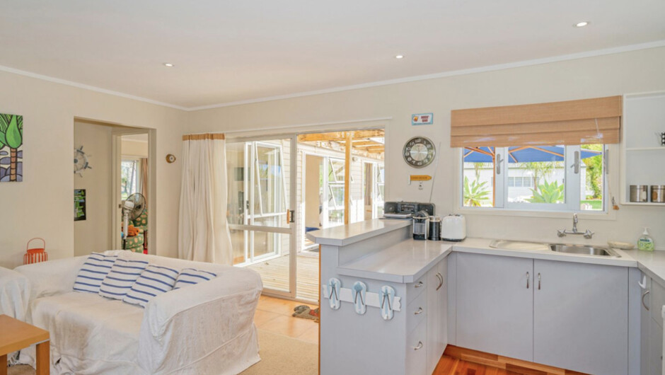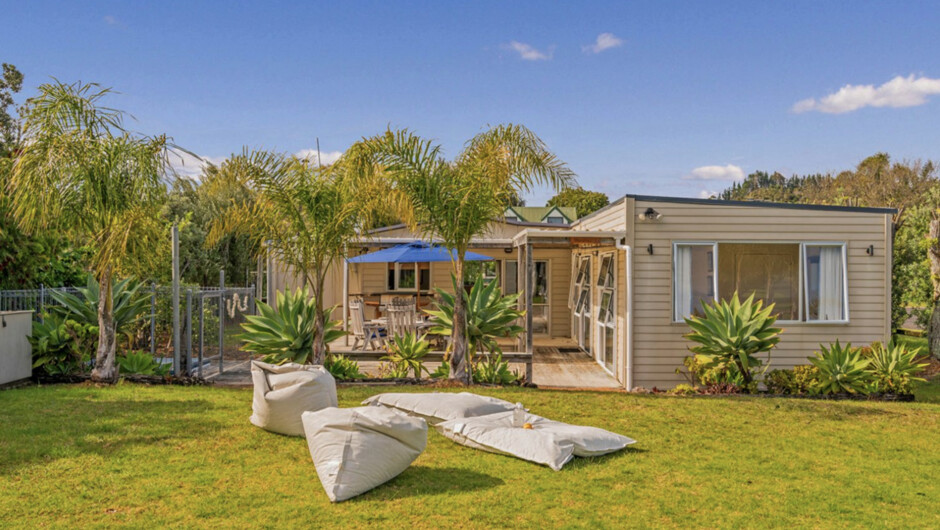 A classic kiwi summer needs a classic kiwi home. Popping with colour, the Oysters Retreat is perfect for a family looking to lay back and enjoy the chill atmosphere at Cooks Beach. This 3-bedroom holiday home comes with an expansive deck space area that leads directly onto the lawn, perfect for having a couple of beers out in the sun. With sliding doors surrounding the main living areas, there's a great indoor/outdoor flow that puts you at ease. The large lawn outside is perfect for the kids to kick a ball around and enjoy. For your next adventure down at Cooks Beach, visit the Oysters Retreat.