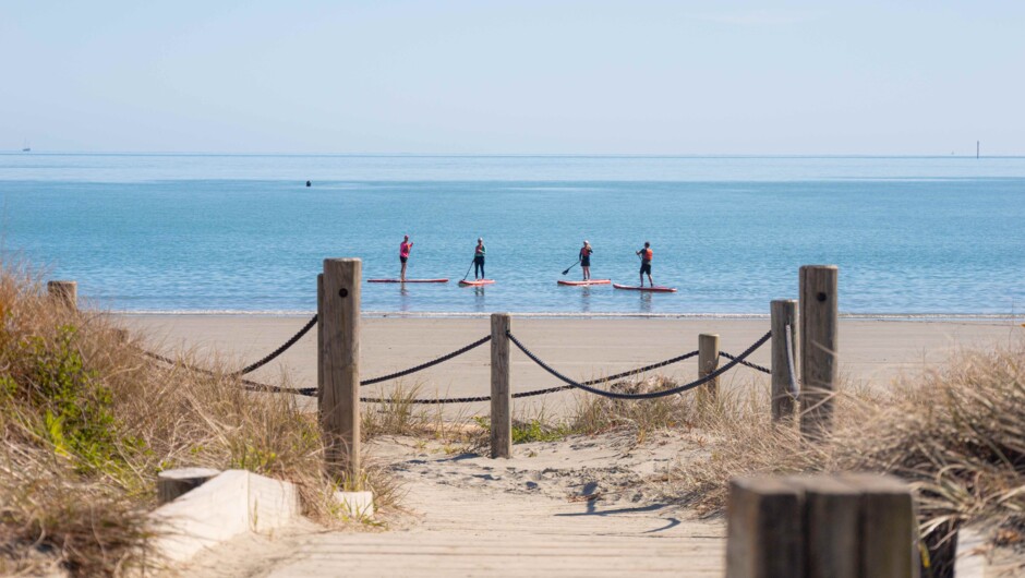 Join a guided paddle, or hire your own paddleboard or sit on top kayak hire, only minutes from the centre of Nelson, at Tāhunanui Beach.