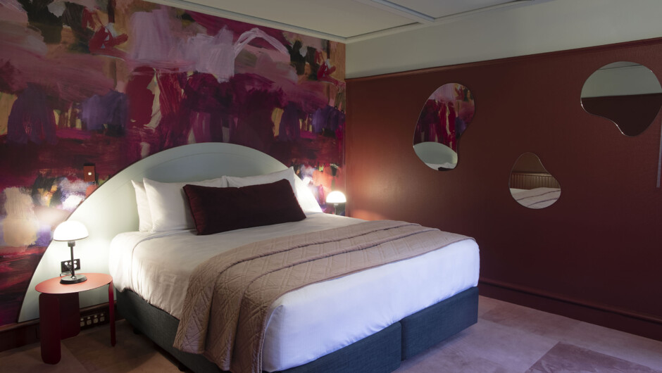 Discover an exceptional boutique luxury hotel. A surreal sanctuary inspired by the magic found in the surrounding nature. With a creative-cool designer style and luxe facilities this is a high-end playground for grown-ups. The ultimate sanctuary for relaxation, from the spacious guest rooms to the hotel sauna or complimentary drinks served in a cosy shared lounge every evening. Wake refreshed from a night spent in your luxe designer room, with specially commissioned wallpaper by local artist Deborah Moss. A stones-throw from the world-class eateries and entertainment of central Queenstown. Situated next to the botanical gardens, you can take your time and breathe in the beauty of the surrounding lake and mountains.