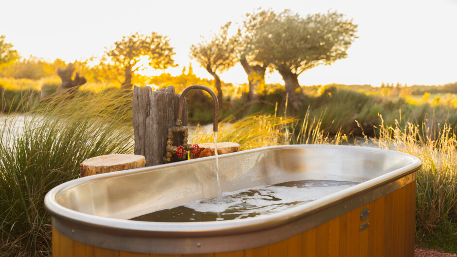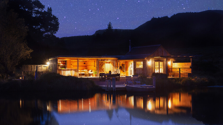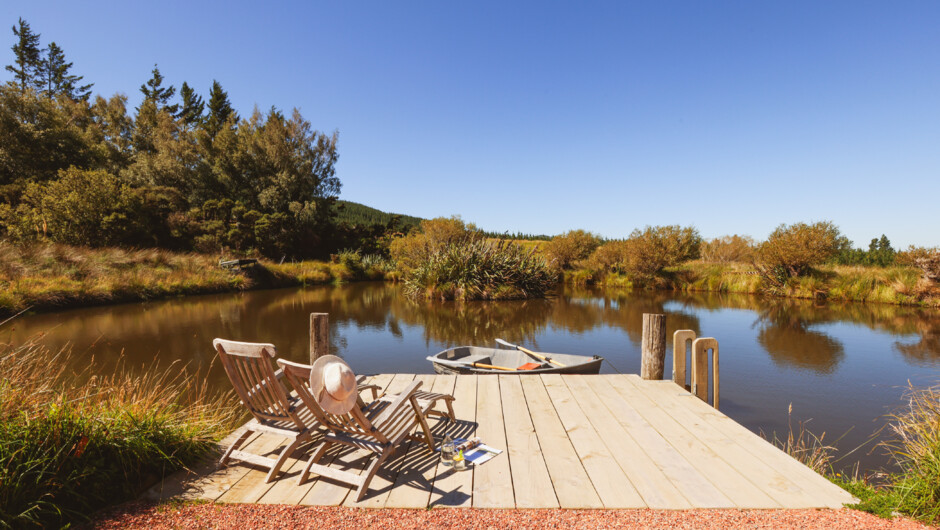 It is a 50-minute drive from Christchurch International Airport, one hour from Christchurch City and 20 minutes from the Mt Hutt access road. It's perfectly positioned geographically for a stopover to or from Queenstown, Tekapo, West Coast and beyond. The Mai Mai gazes over calm waters and gentle rolling farmland. Wander across the bridge leading to your cosy hut. Inside, a comfortable living and sleeping area is warmed by a Roaring Meg fire, while the luxe bathroom showcases a double black corten steel shower that blends rustic touches with modern comfort. Soak up the sunshine on the deck or hop into the rowboat out on the pond (or even go for a dip) Further along the waterside, a private outdoor bath sits on the edge of the pond.