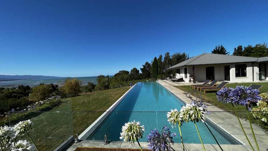 Come and relax in at our 22m infinity pool overlooking the bay, enjoy the warmth of the spa or sauna or go for a walk along the spectacular kina cliffs which are just a 5min stroll down the hill. Located in the heart of the Tasman district, the Estate is the perfect base for exploring the nearby National Parks or indulge in the rich artesian culture the region has to offer ranging from exquisite wines, beers to world class cheeses and sausages.